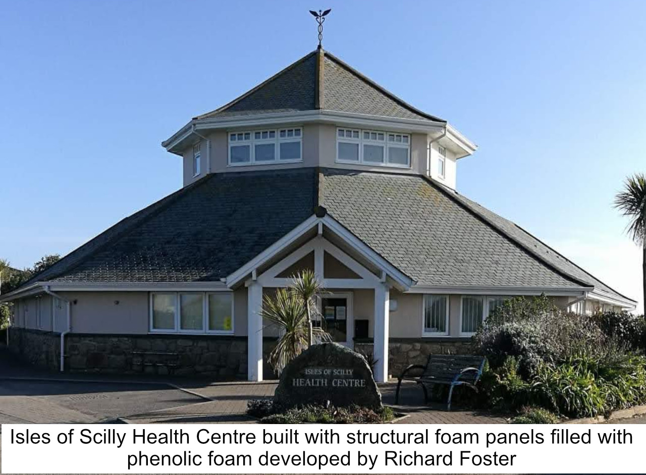 This product was made to replace polyurethane foam that had insufficient fire resistance. It was used by a Cornish company for making structural panels that were used to quickly build houses. The system was sold to a national house builder that used the formulation to mass produce rigid, fire proof panels.